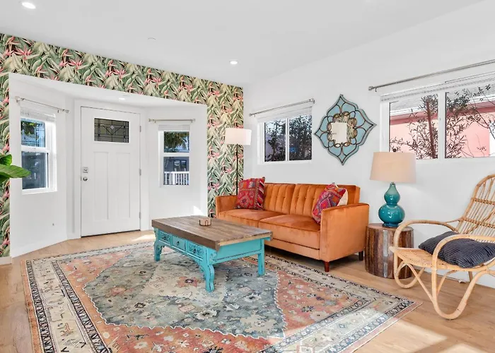 O apartamento Walk To Hollywood Blvd From Urban Jungle Oasis Apartamento está localizado no distrito de Hollywood em Los Angeles e tem pátio. Esta propriedade é composta por 1 quartos, 1 casas de banho e cozinha totalmente equipada.